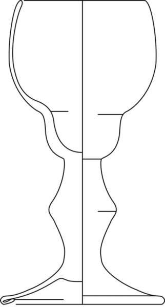 | 4b | trechter- of peervormig kelkglas met dikwandige bodem, ook met luchtbel, massieve paddestoelvormige- of biconische stam, ook met nodus, ook met luchtbel, voet met pontilmerk |
