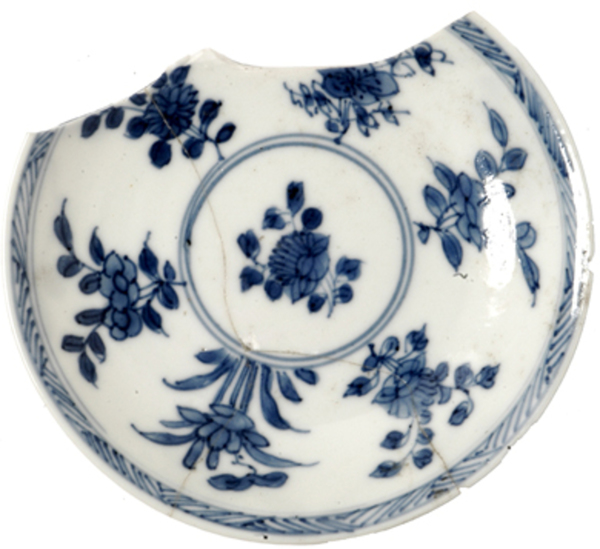| 5c decoratie | florale motieven onderglazuur blauw |