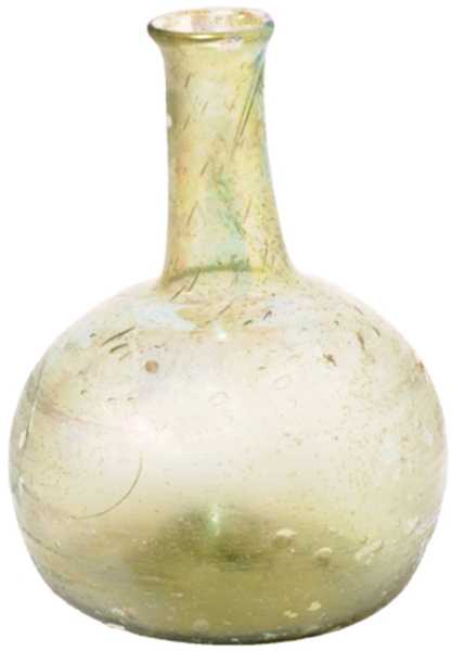| 4b | bolvormige fles met lange hals en uitstaande lip, opgestoken bodem met pontilmerk |