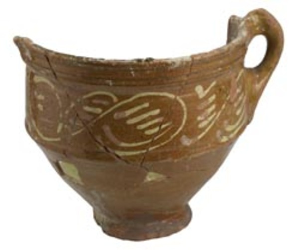 | 5a baksel | roodbakkend aardewerk , met natuurlijke ijzerconcreties (zwarte spikkels) |