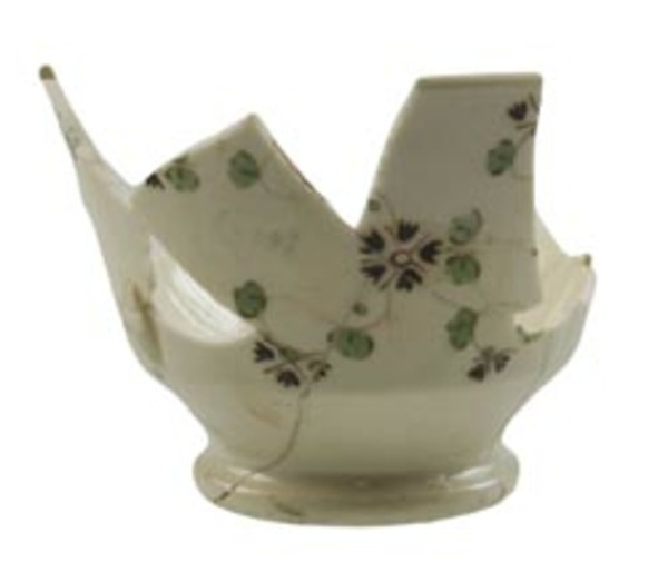 | 5c decoratie | inw: bloem/bladgroepje op bodem, uitw: bloem/bladgroepjes op schouder onderglazuur rood, bovenglazuur zwart en groen |