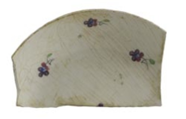 | 5c | variatie vergeet-me-niet; spiegel en vlag: fijne bloempjes met een groen blaadje en een rozet van paarse, blauwe en rode stippen polychroom |