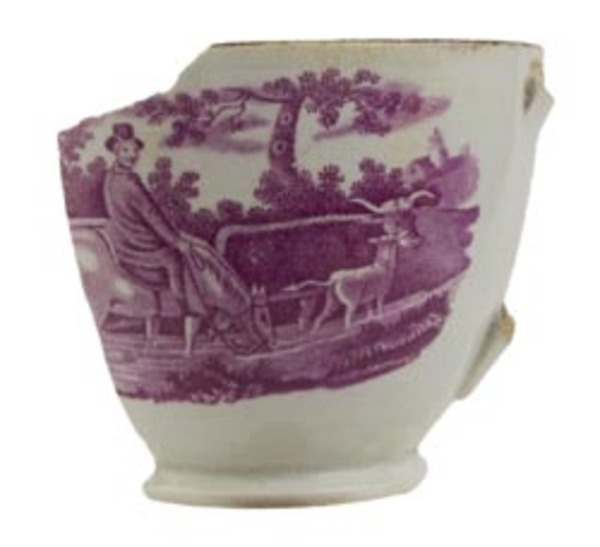 | 5c | uitw: detail: naar rechts lopende man te paard met koe en schaap, zie catnr. 204 paars |