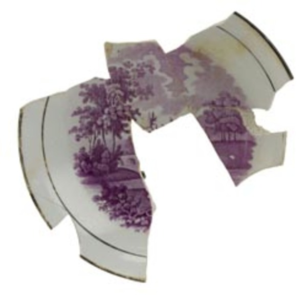 | 5c decoratie | spiegel: detail met bomen, water en brug, vlag: filet onder rand en halverwege vlag rood, paars |