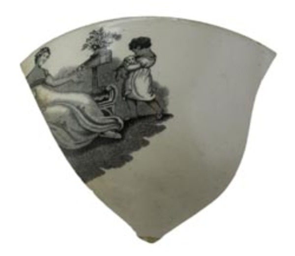 | 5c | uitw: moeder op sofa en een kind dat een hondje in de armen houdt, inw: blauwe rand en zwart filet halverwege wand Decor: infant, blauwe rand blauw, zwart |
