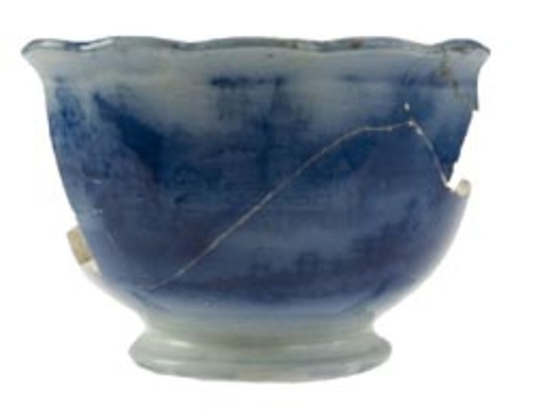 | 5c | uitw: Chinees waterlandschap met zeilschip, inw: geometrisch filet met bloemen, op bodem een zeilschip (vloei)blauw |