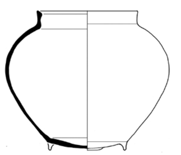 | 4b vorm | bolle voorraadpot met hoge schouder zonder hals, rechtop staande manchetrand, lobvoeten |