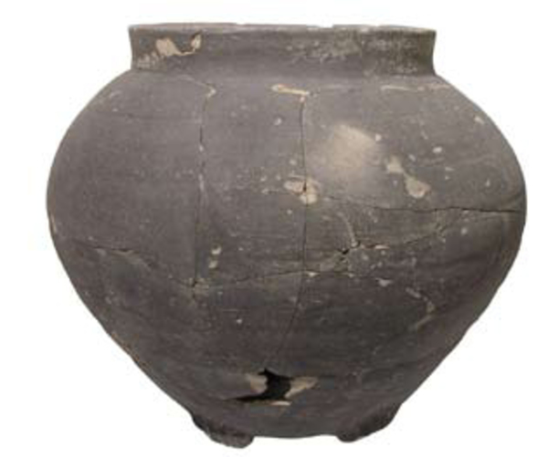 | 4b | bolle voorraadpot met hoge schouder zonder hals, rechtop staande manchetrand, lobvoeten |