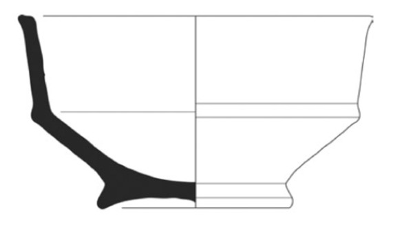 | 4b | kop met scherpe knik bodem-wand, hoge wand, standring |