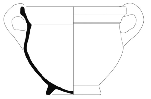 | 4b | bolle pot met afgeronde buikknik en ingesnoerde hals met (afgeronde) kraagrand met ribbel onder de rand, standring |