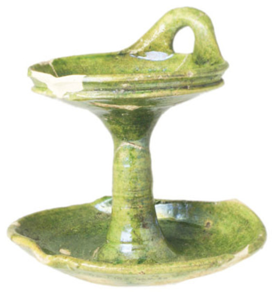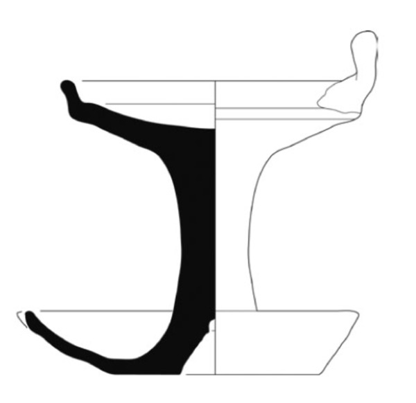 | 4b | olielamp met twee schalen en stam, 1 worstoor, lekschaal afgeplat, geknikte rand |