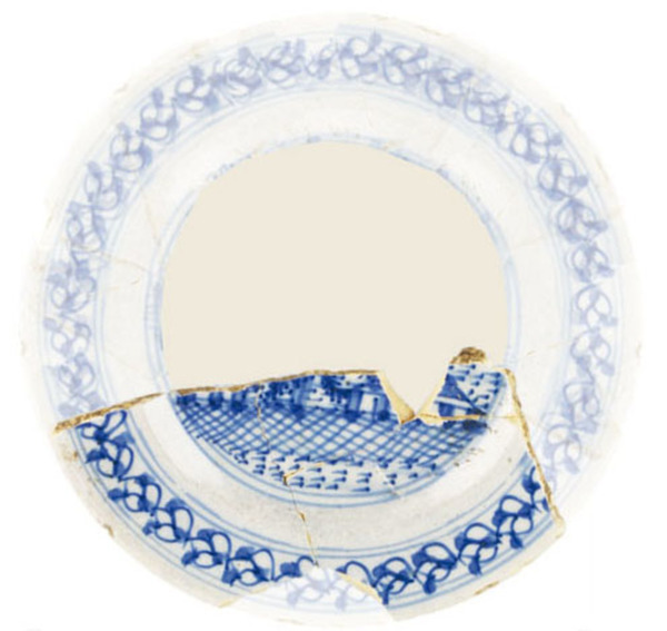 | 5c | sp: landschap? vl: band van losjes geschilderde ruitjes, concentrische cirkels blauwe beschildering |