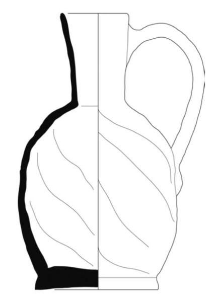 | 4b | eivormige kan met nauwe hoge hals, schenklip en verticaal oor, platte bodem |
