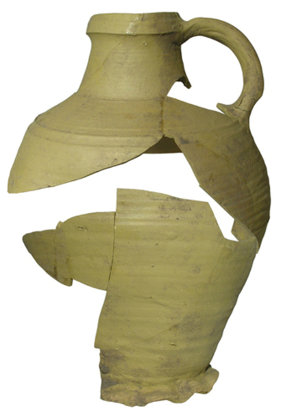 | 4b | bolle kan met cilindrische hals en kraagrand, ribbel op halsaanzet, op standring |