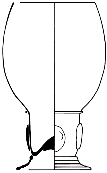 | 4b | roemer met ei- of tonvormige cuppa , draad op de overgang naar de schacht en één of meer verspringende rijen noppen, opgestoken bodem met pontilmerk, gewonden draadvoet |