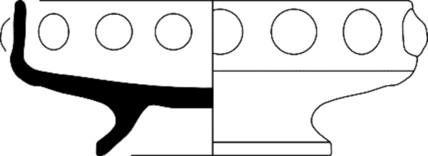 | 4b | drinkschaal met rechte wand, ronde dellen, standvoet in de vorm van een hoge gladde uitstaande standring |