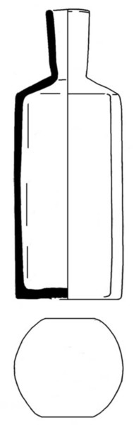 | 4b | parfumfles met twee platte- en twee afgeronde zijden, licht conische hals, contactvorm met naden, ook tekst in reliëf, standring of standvlak |