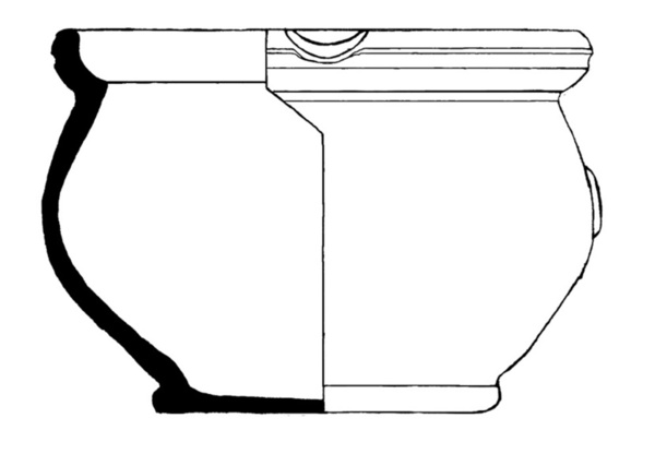 | 4b | bolle kachelpan, afgeronde kraagrand met dekselgeul (met groef aan de buitenzijde), standvlak |