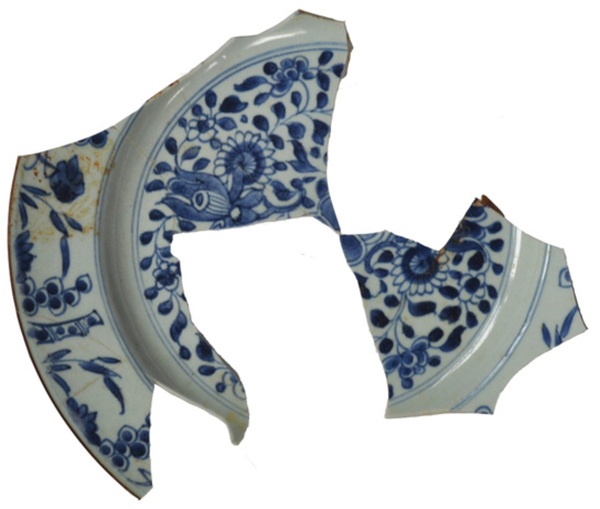 | 5c | spiegel: strooibloemen, vlag: bamboe en bloemen onderglazuur blauw |
