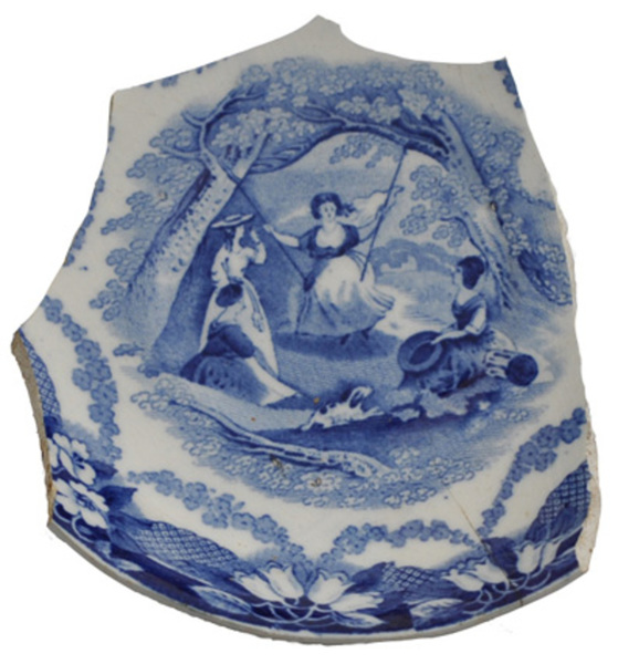 | 5c | drukdecor in blauw, model: girls, meisjes in het bos op een schommel blauw |