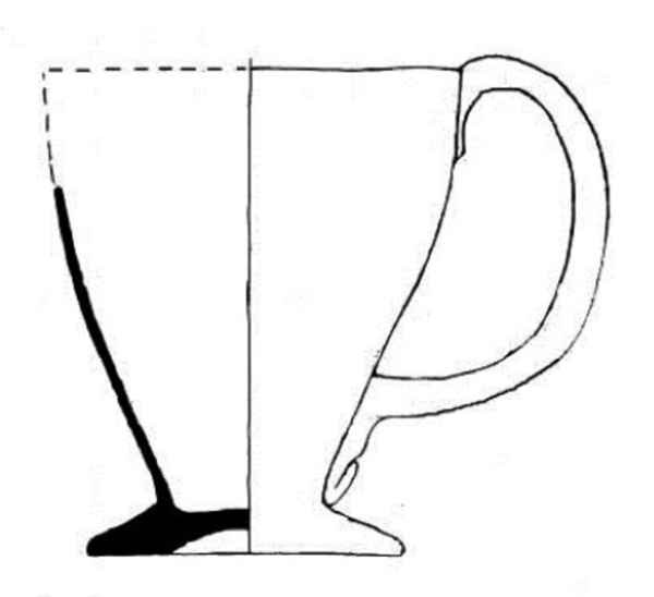 | 4b vorm | dikwandige getailleerde beker, verdikt standvlak met (eventueel weggeslepen) pontilmerk |