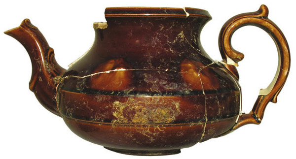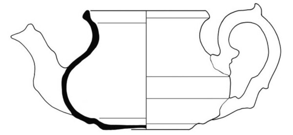 | 4b | bolle doch gedrongen theepot met uitgezakte bodem en ingesnoerde hals, driehoekig verdikte rand met dekselgeul, standvlak |
