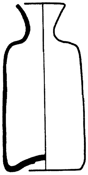 | 4b | kleine vierzijdige fles, kleiner dan 13cm, zonder of met korte hals met uitstaande lip, standvlak of opgestoken bodem met pontilmerk |