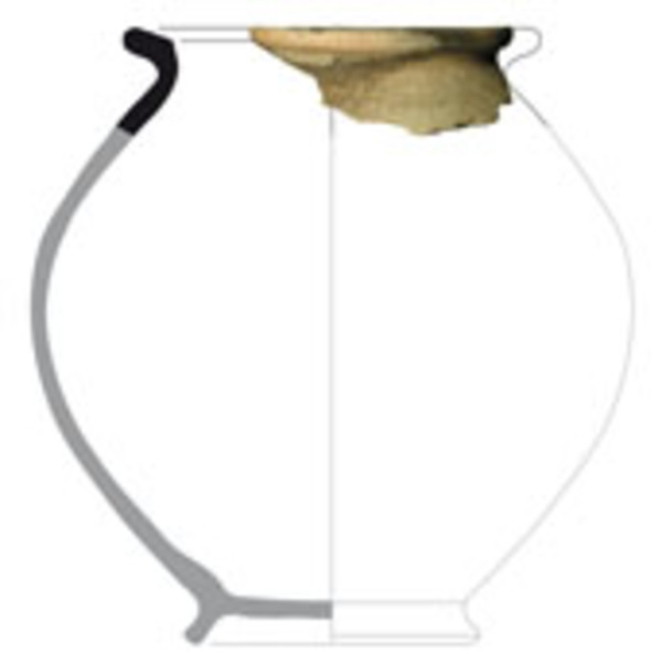 | 4b vorm | hoge pot met licht gewelfde buik, haaks naar buiten geknikte rand, aan buitenzijde aangedrukt, standring (Sanke randtype 2.5) |