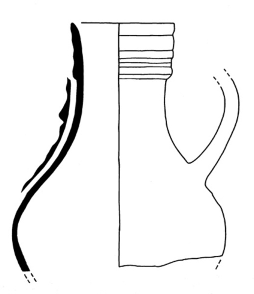 | 4b | zeer bolle kan met afgeronde buikknik, schouder overgaand in hoge hals met kraagrand, standvoet |