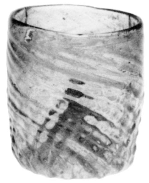 | 4b vorm | cilindrische beker met verticaal of naar rechts- of links draaiend ribbelpatroon, opgestoken bodem met pontilmerk |