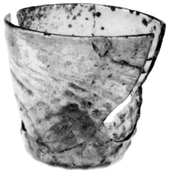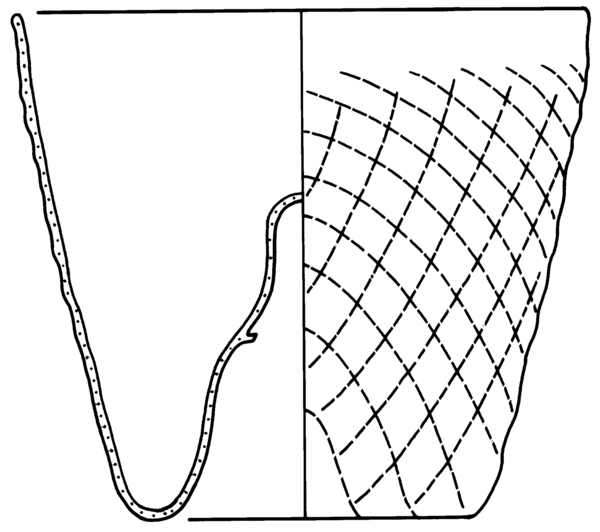 | 4b vorm | conische beker met gekruist ribbelpatroon, opgestoken bodem met pontilmerk |
