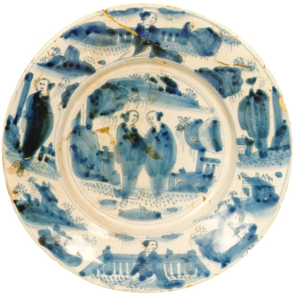 | 5c | vlag en spiegel: Chinezen in landschap blauw |