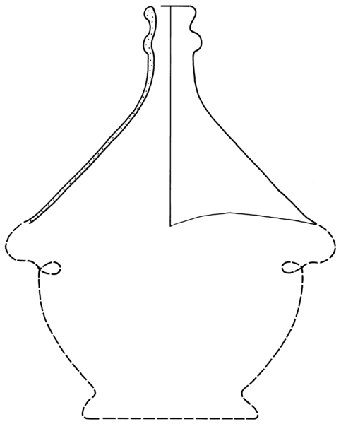| 4b | dubbelconische fles met gestuikte wand, opgesoken ingevouwen voet met pontilmerk |