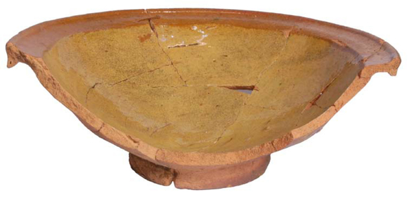 | 4b | bolle kom met haaks naar buiten geknikte rand, aan buitenzijde aangedrukt, standring |