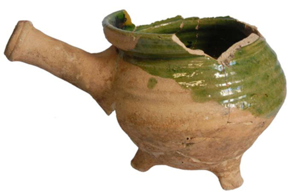 | 5b afwerking (kleur/glazuur) | inwendig loodglazuur met koperoxide, uitwendig spaarzaam loodglazuur met koperoxide |
