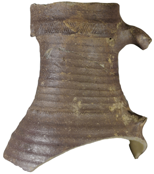 | 4b | bolle kan met cilindrische hals en kraagrand, ribbel op halsaanzet, standring |