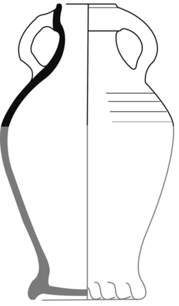 | 4b | kruikje met afgeronde buikknik en kraagrand, standring |