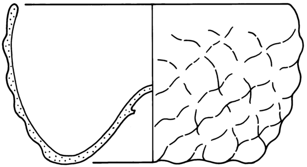 | 4b | lage cilindrische licht buikige maigelein met gekruist ribbelpatroon of naar links of rechts draaiend ribbelpatroon, opgestoken bodem met pontilmerk |