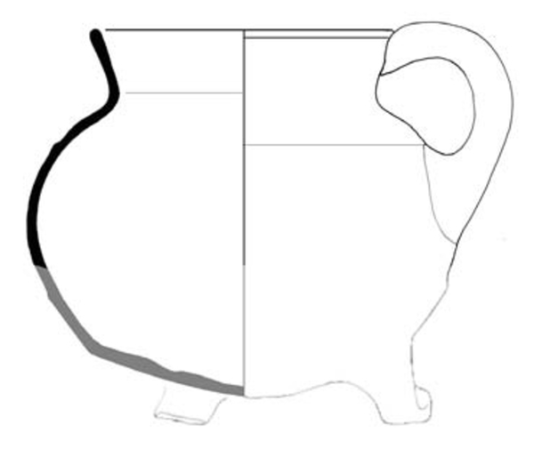 | 4b | bolle grape met ribbel op schouder en hoge uitstaande rand met knik naar schouder, poten |