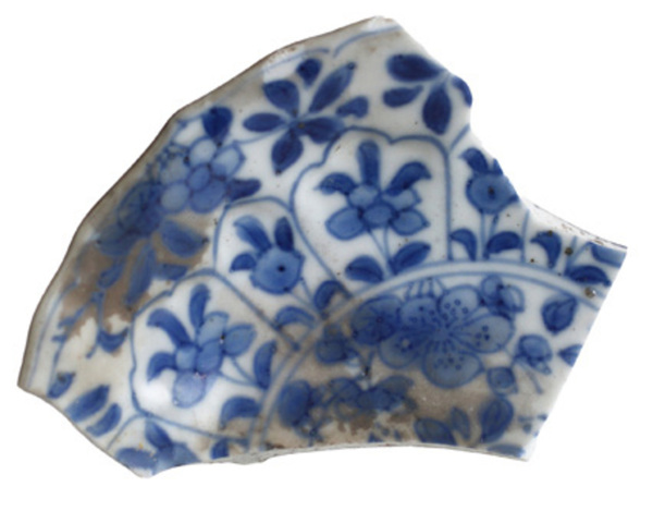 | 5c | vakverdeling met floraal motief onderglazuur blauw |