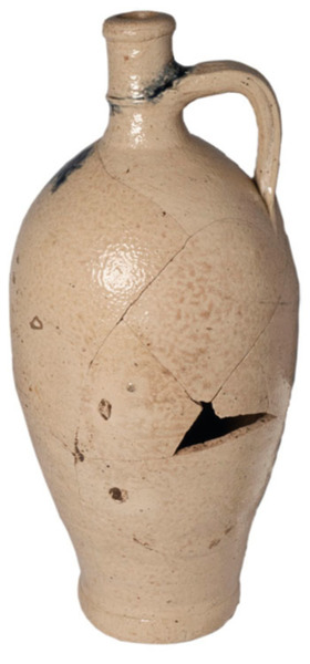 | 4b | P-kruik: iets bolle fles met cilindrische nek en verdikte lip, ribbels op hals, standvoet |