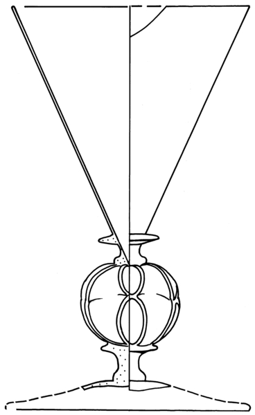 | 4b | trechtervormig kelkglas met of zonder afgeronde bodem, stam met holle nodus met paarsgewijs toegeknepen ribben, met één of meer schijfjes, schijfvormige voet met pontilmerk |