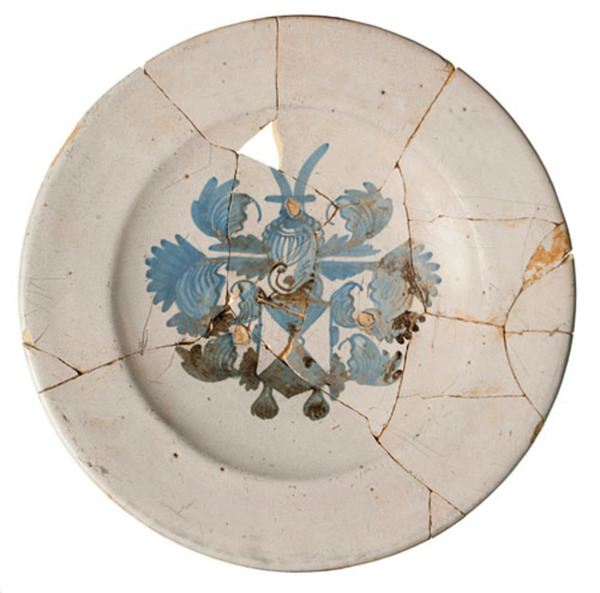 | 5c decoratie | kobaltblauwe beschildering: heraldisch wapen met helm en pluimen blauw |
