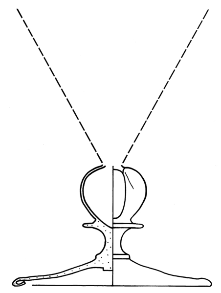| 4b vorm | trechtervormig kelkglas met of zonder afgeronde of dikwandige bodem, met vierlobbige holle nodus- of balusterstam, met één of meer schijfjes, schijfvormige voet met pontilmerk |