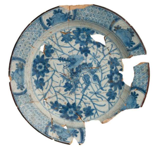 | 5c decoratie | kobaltblauwe beschildering: chinoiserie, rankendecor met draak blauwe beschildering |