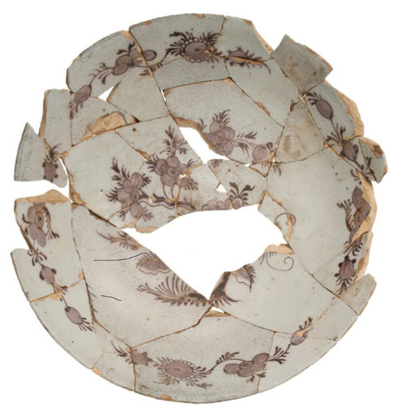 | 5c decoratie | mangaan beschildering: chinoiserie, floraal motief paars |