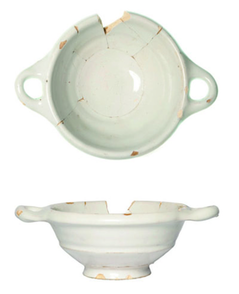 | 4b | grote afgeronde kom met ver uitgebogen rand en ribbel op wand, standring |