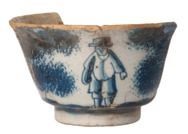 | 5c decoratie | kobaltblauwe beschildering: landschap met mensen blauwe beschildering |