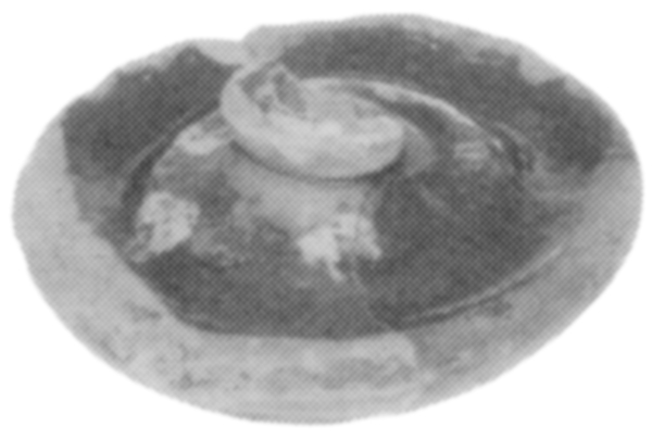| 5c decoratie | uitwendig: stippen in gele slib |
