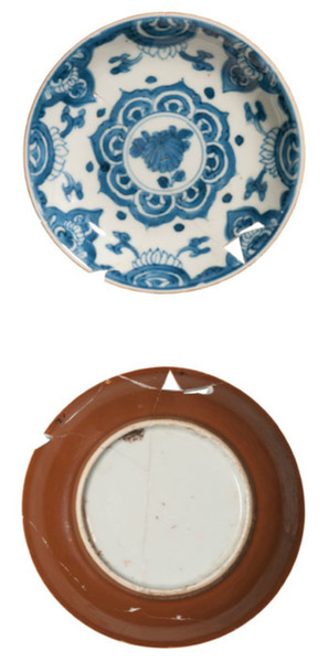 | 5c | floraal motief, ijzerrode glazuur op onderzijde onderglazuur blauw, bruin |